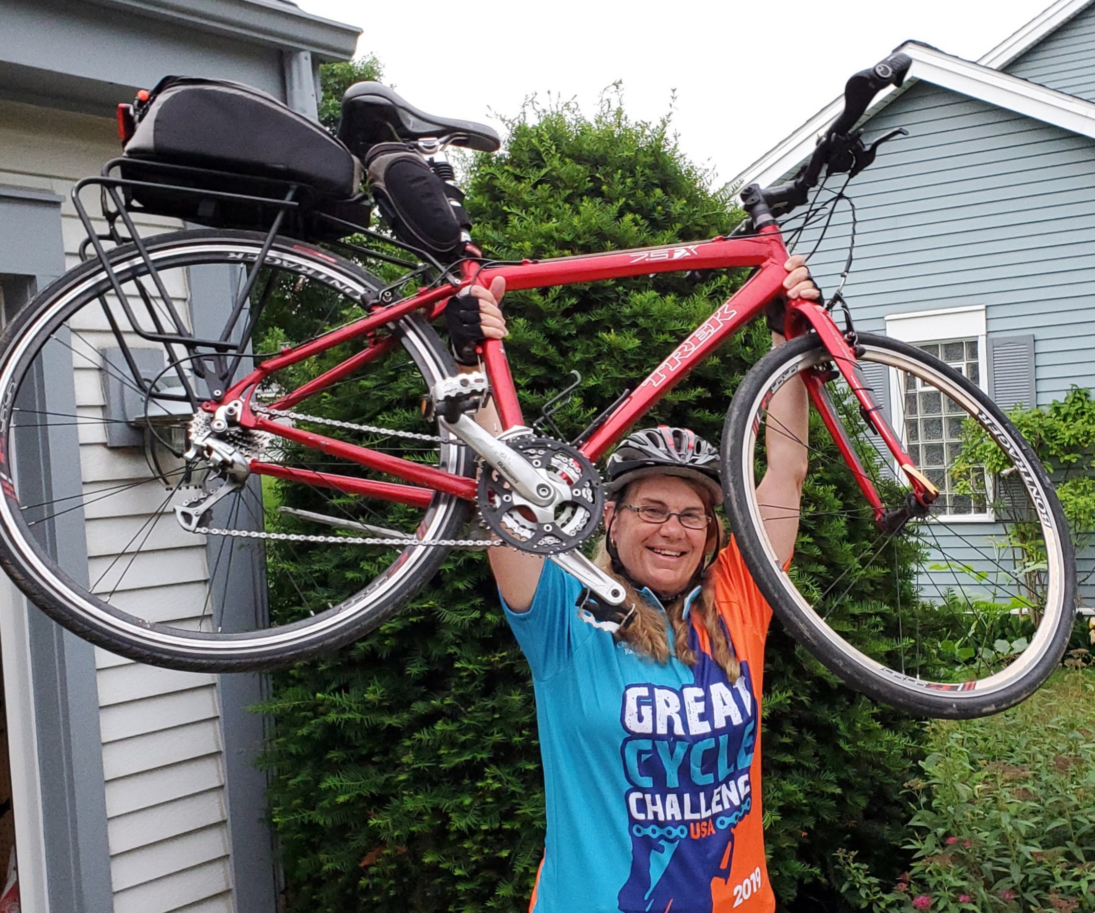 With Gene’s reduction in work hours as he nears retirement has come more free time to join me on the trails. This year was my fifth year of the GCC and his third. Each year, we’ve challenged ourselves to increase our mileage goals – now up to 500. It’s no longer enough to meander around our hometown of Waukesha. Gene and I, with our trusty two-wheeled companions, Gracie and Champion, can often be found riding scenic trails around our state and hopping on our bikes to get to all our appointments and errands as well. Most days, it’s a pleasure to pedal through God’s creation, and I whisper a thank you for the good health that enables me to be on the trail. Sometimes, we get soaked in an unexpected deluge. We slog through wet crushed limestone that grabs at our tires. We fight heat, leg cramps and soreness you-know-where. But, with most every challenge, I think of the kids for whom we ride, the kids who struggle with treatments, medication, fatigue, and hospitalization, and I pedal on with purpose. They are my inspiration.