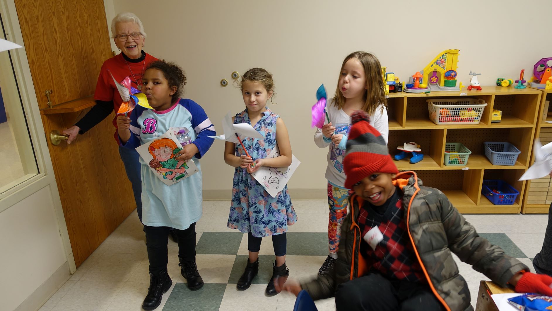 Volunteers include church members, students from nearby Carroll University, and community members who hear about the program through civic presentations. They arrive a half-hour before the students, who are transported by bus after school. The volunteers busy themselves preparing samples of the food group of the day and organizing their stations for the activities they plan to lead. Cindy, a retired teacher and church member, volunteers because, as she says, “I just love working with kids.” She has high praise for the organization and the efficiency of the program.