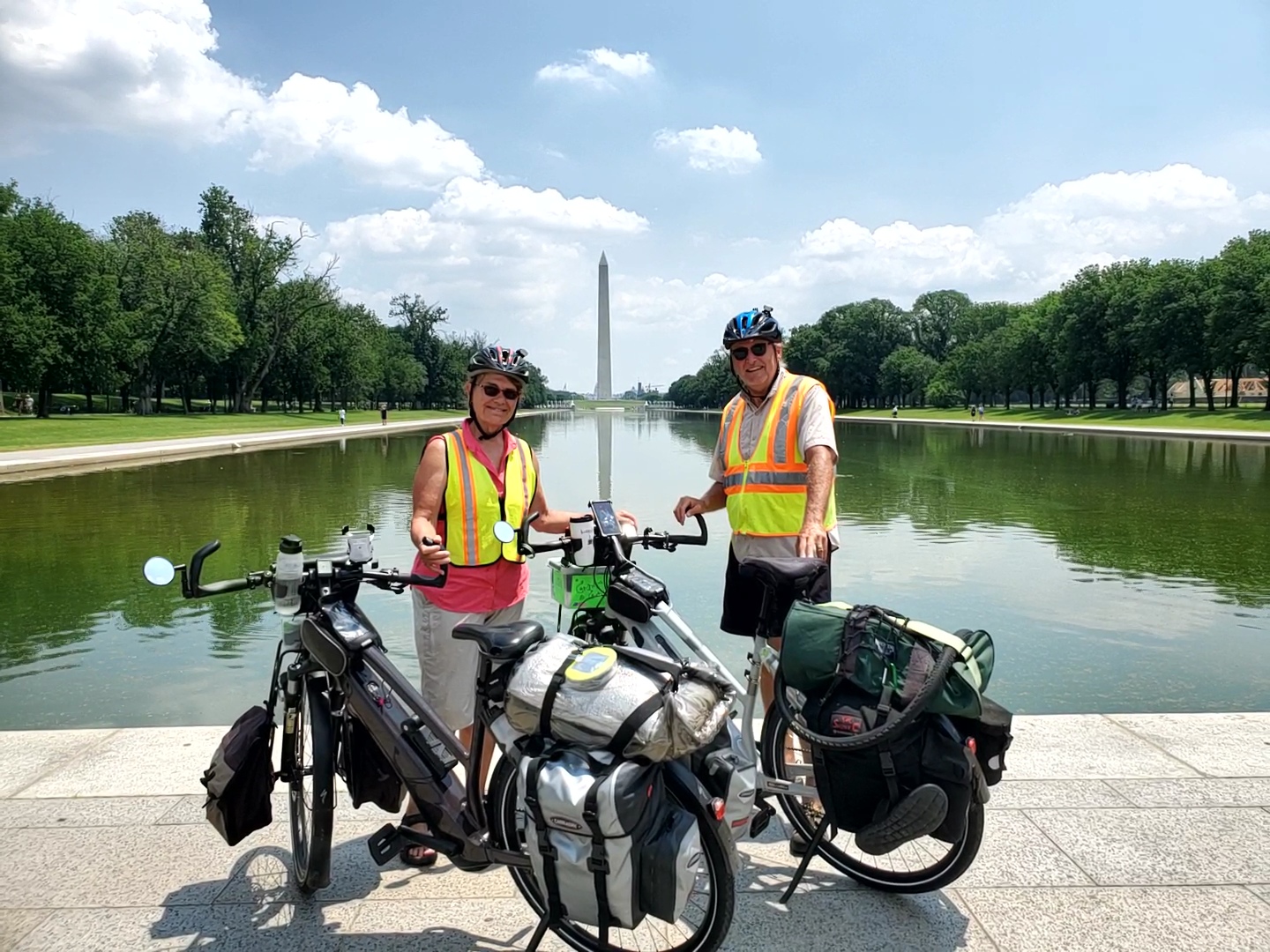 Our itinerary was built not on the desire to make record time, but with the hope of enjoying the ride and the people we met along the way. We savored spectacular views of azure waters in the Keys, beachside boardwalks along the Florida coast, miles of paved trails and historic areas like St. Augustine, Savannah, Jamestown, Mt. Vernon, Philadelphia, and Boston. We camped in state parks and small private campgrounds or stayed with hosts from Warm Showers, and when we couldn’t find either of those, sought out inexpensive hotels. We stayed in Williamsburg for a week and splurged for a few days of fancy digs in Washington, D.C. and Times Square. We even took time to go whale watching in Provincetown on Cape Cod. In mid-July, we finally rode into the little town of Calais, Maine, at the Canadian border and the end of our journey.
