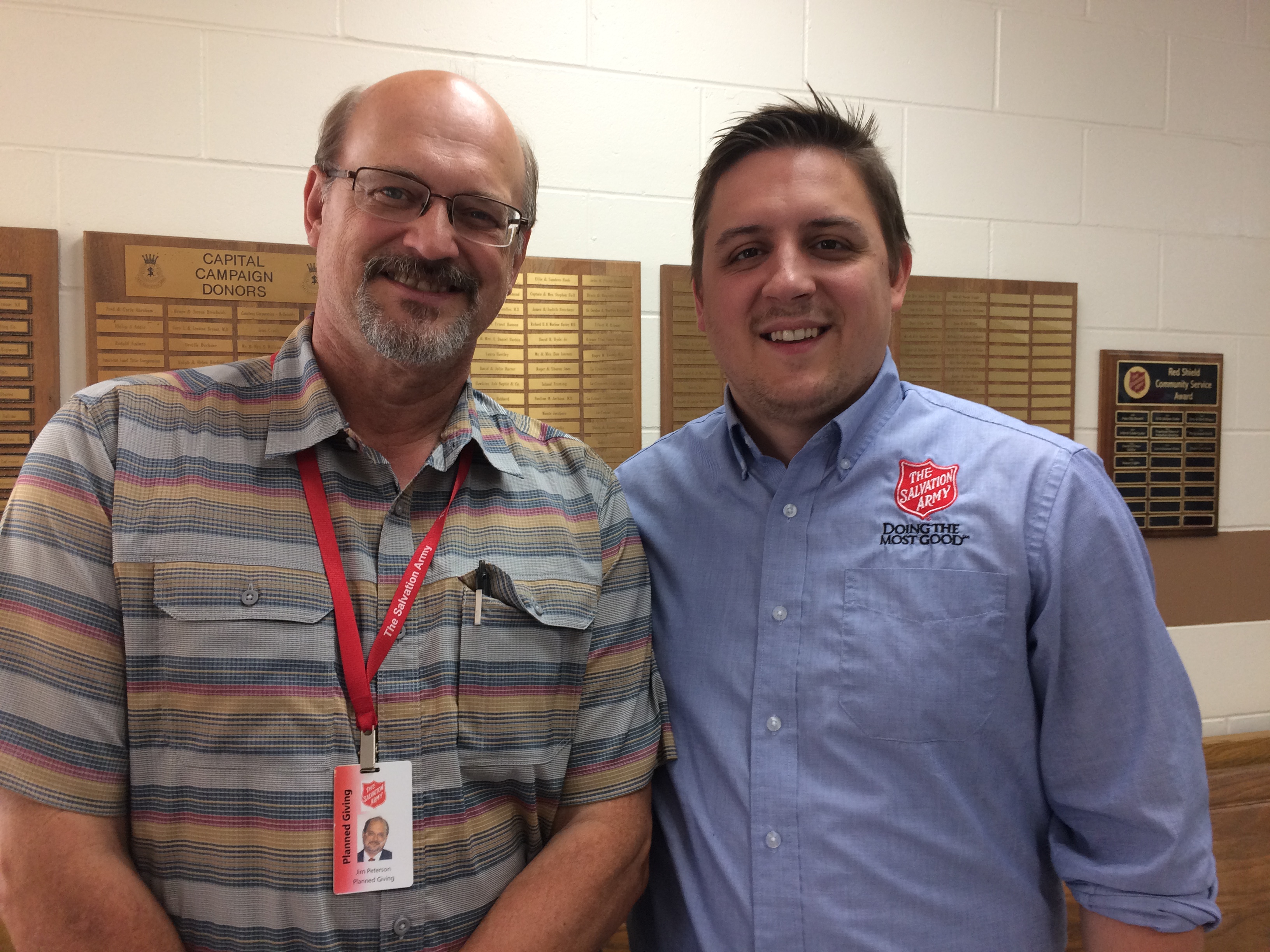 Nick Radner, Director of Development, and Jim Petersen, Director of Planned Giving, take time from their meeting to welcome us.