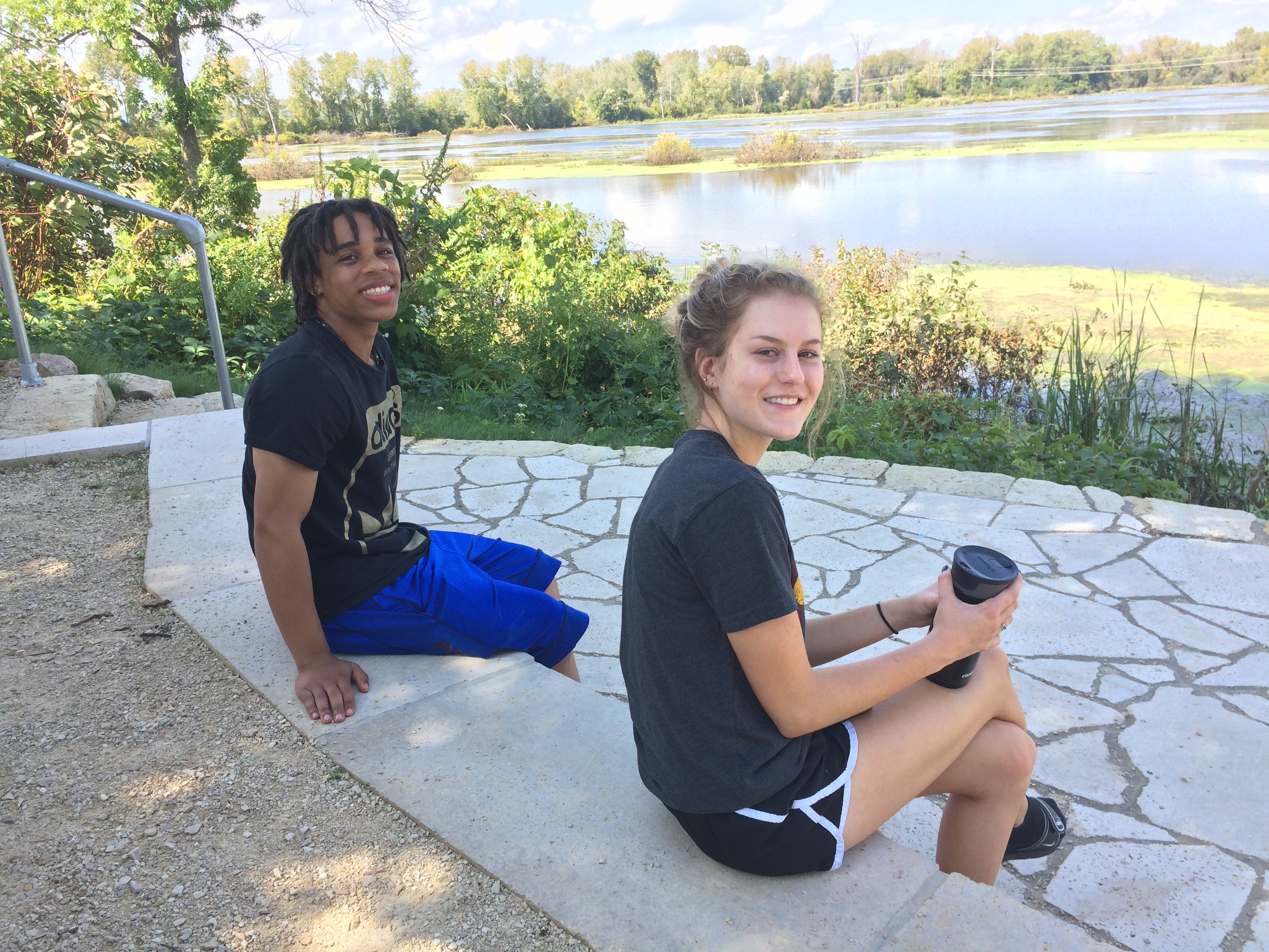 Before we left, we walked outside to the new semi-circular seating area with stepped concrete benches overlooking the lake. Two students from UW-La Crosse, David and Rachel, joined us for a study break. Together we watched bicyclists pedal along the paths around the lake and caught glimpses of ducks, muskrats, and sunning turtles. Even though the place we loved has changed, it is still a gem in the community and a lovely place to learn, relax, and enjoy the outdoors.