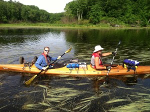 Jason, our host near Brainerd and our first honorary crew member, takes a test paddle before we head back out onto the Mississippi.